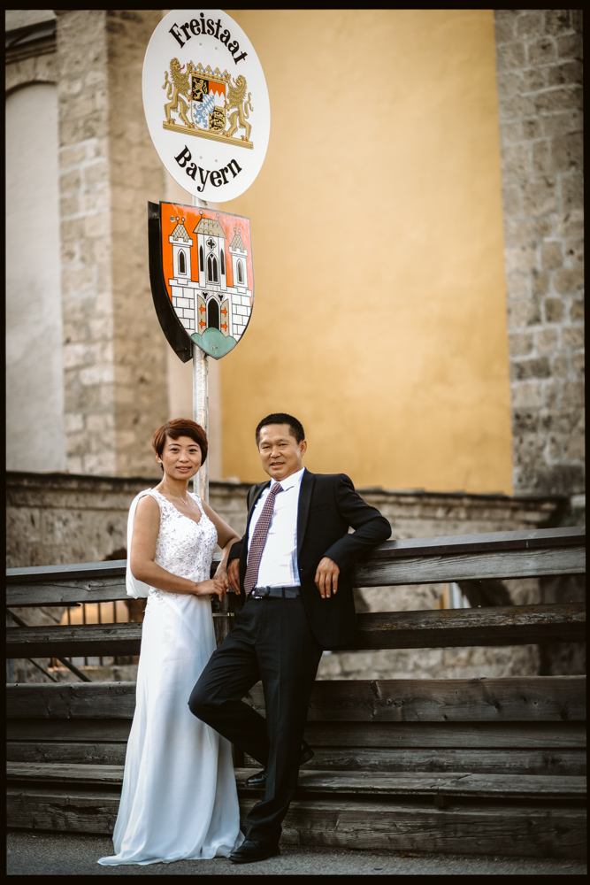 Ich bin in Burghausen aufgewachsen und kenne fast jeden Winkel der Stadt. Als Hochzeitsfotograf in Burghausen begleite ich regelmäßig Paare, die gezielt wegen dieser besonderen Atmosphäre hier heiraten. Selbst internationale Hochzeiten durfte ich hier bereits fotografieren – darunter ein Brautpaar aus China. Die Kombination aus Geschichte, Architektur und kurzen Wegen macht Burghausen fotografisch extrem vielseitig.
